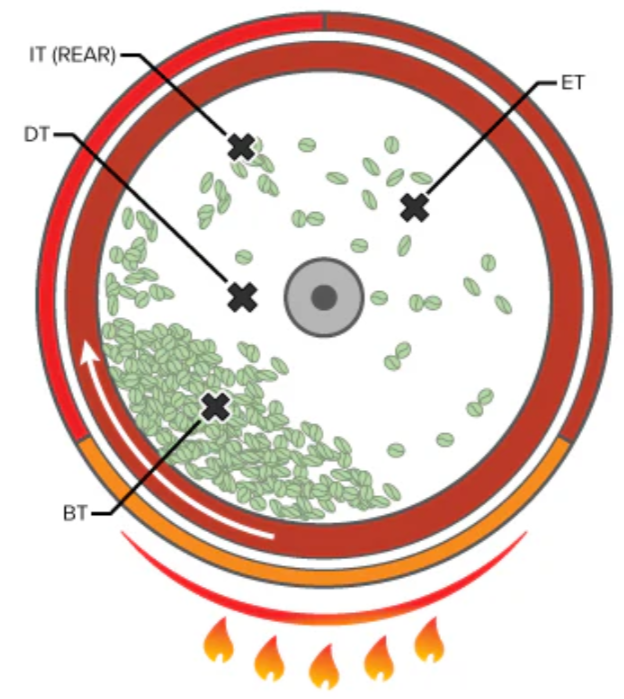 バーナーを通過した後、ロースタードラムに入る前の空気の温度を測定します。